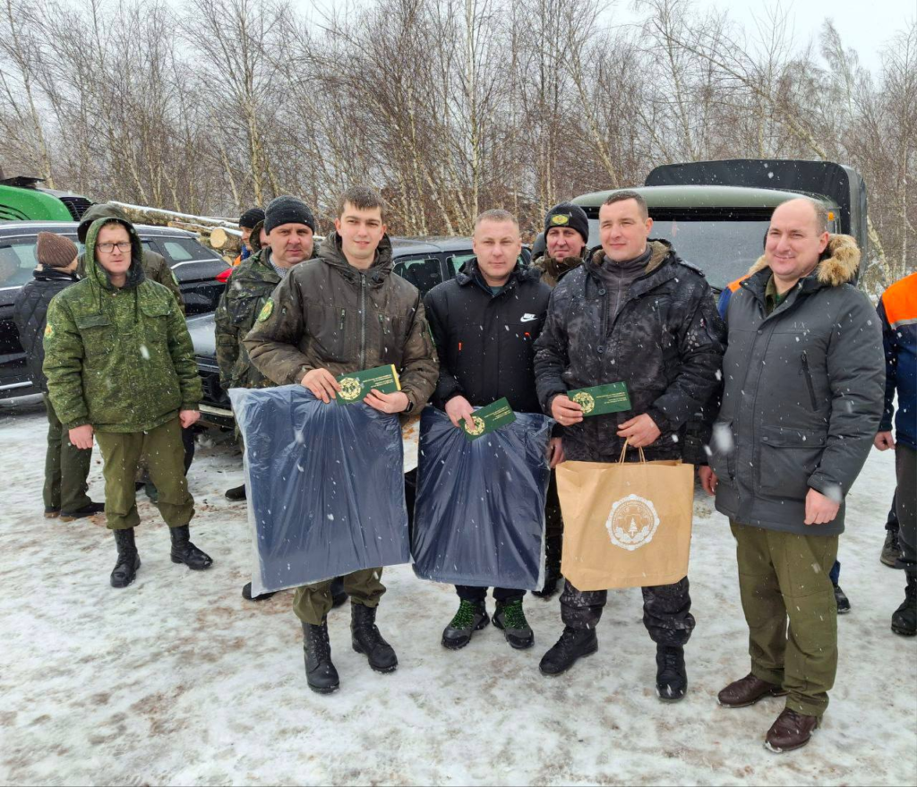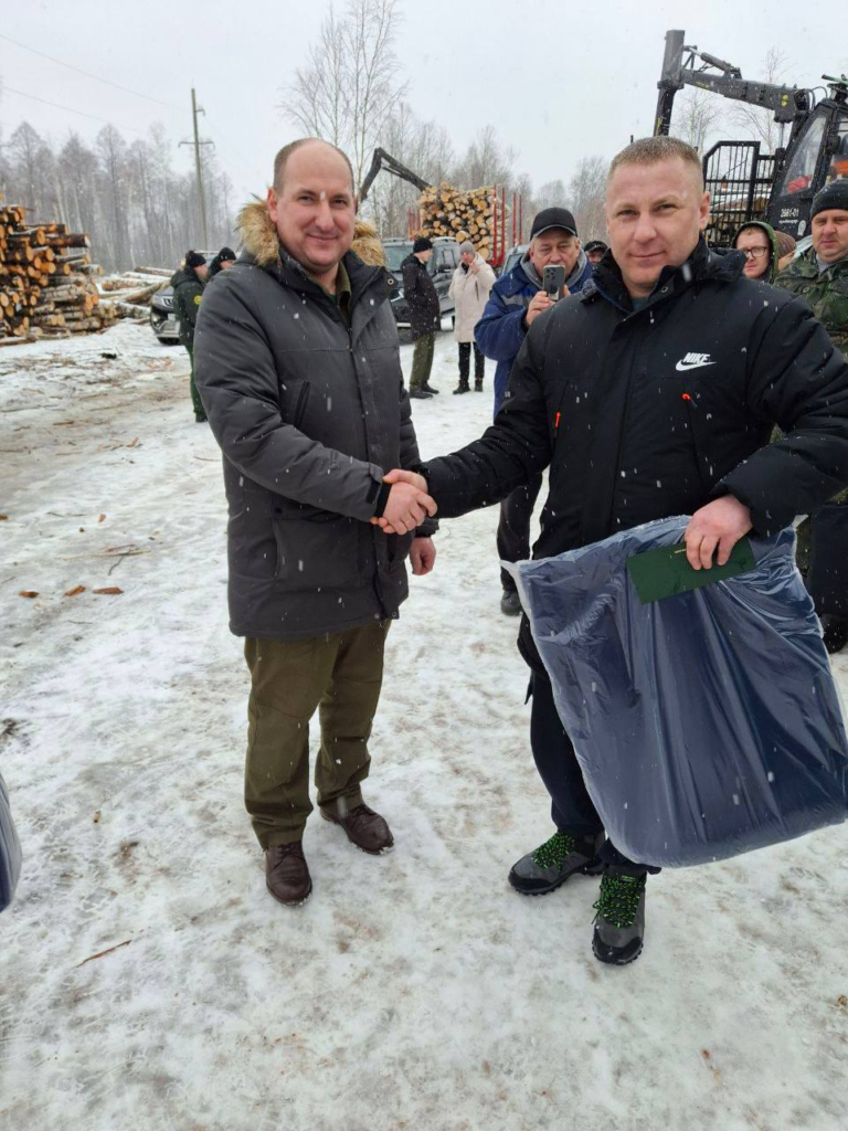 Работники Дрогичинского лесхоза, занятые на разработке труднодоступных участков ветровально-буреломных лесосек в Василевичском лесхозе, в День защитников Отечества принимали поздравления от начальника управления экономики и инвестиций Минлесхоза Дмитрия Моторенко и генерального директора Брестского ГПЛХО Александр Демидко.